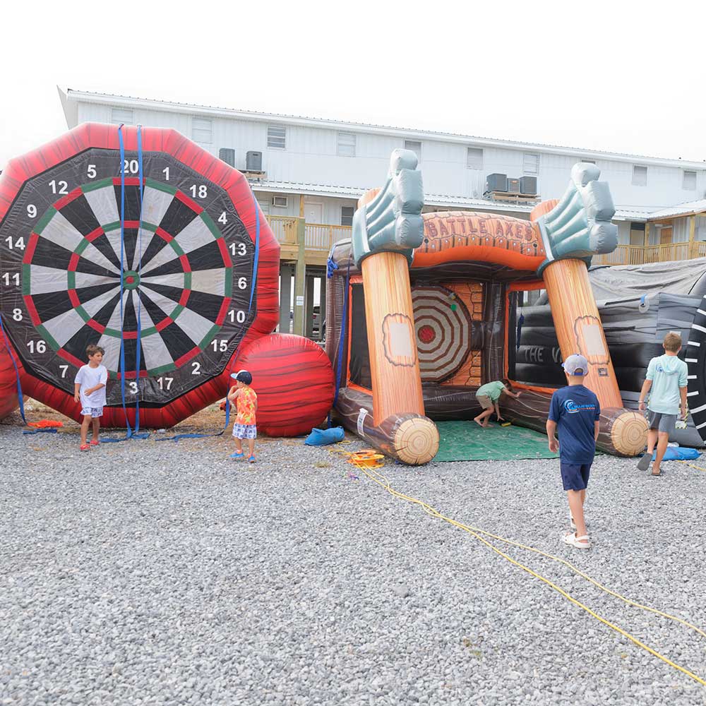 We have a large fenced in area filled with large inflatables and games for kids and theif families to enjoy.